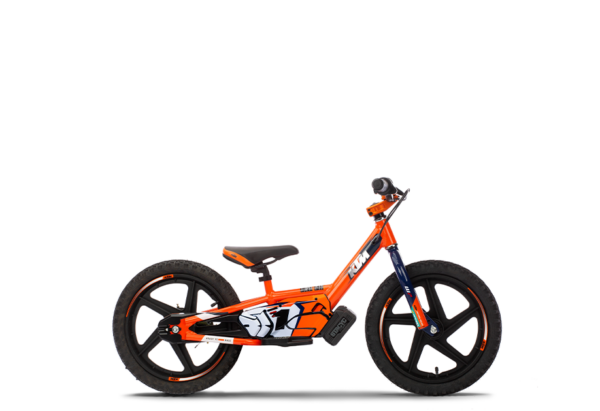 Das KTM SX-E 1.16 ist die perfekte Wahl für Kleinkinder, die etwas Erfahrung mit Laufrädern haben und etwas größer gewachsen sind bzw. Erfahrung mit E-Laufrädern haben und nun ein größeres Bike benötigen. Als optimale Größe sollte dein Kind eine Schrittlänge von 45 cm oder mehr haben, um bei leichter Kniebeugung einfach den Boden zu erreichen. Dein Kind sollte lernen, das Bike mit den Füßen anzuschieben, zu balancieren und ohne Unterstützung durch den Antrieb dahinzurollen. Sobald dein Kind mit dem Bremsen gut zurechtkommt, selbstsicher rollen und die Bremse im Stillstand verwenden kann, erlaube ihm, den Antrieb (das Highlight) zu verwenden. Beginn mit einer Geschwindigkeit, die der nahekommt, mit der es das Bike anschieben kann, und es wird die Verwendung des Gasdrehgriffs lernen. Im Handumdrehen wird jeder Dreh an diesem für ein breites Grinsen sorgen. Nach und nach wird dein Kind seine Fähigkeiten verbessern und mit dem mittelschnellen KTM SX-E 1.16 jede Menge Spaß im Freien haben, viele Stunden lang seine Hand-Augen-Koordination und sein Gleichgewicht trainieren und viel Zeit im Freien verbringen. Die E-Laufräder KTM SX-E 1.16 bieten die einzigartige Möglichkeit, den Champions von morgen das Motorradfahren näherzubringen. Mit diesen Rädern imitieren sie den Look ihrer Helden von KTM FACTORY RACING (Startnummern inklusive), verbessern ihr Gleichgewicht sowie ihre Beherrschung des Gasdrehgriffs und bereiten sich auf den Umstieg auf größere Bikes vor.